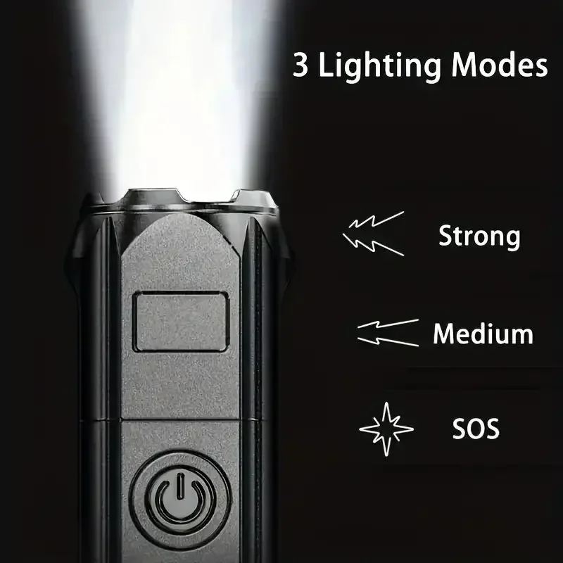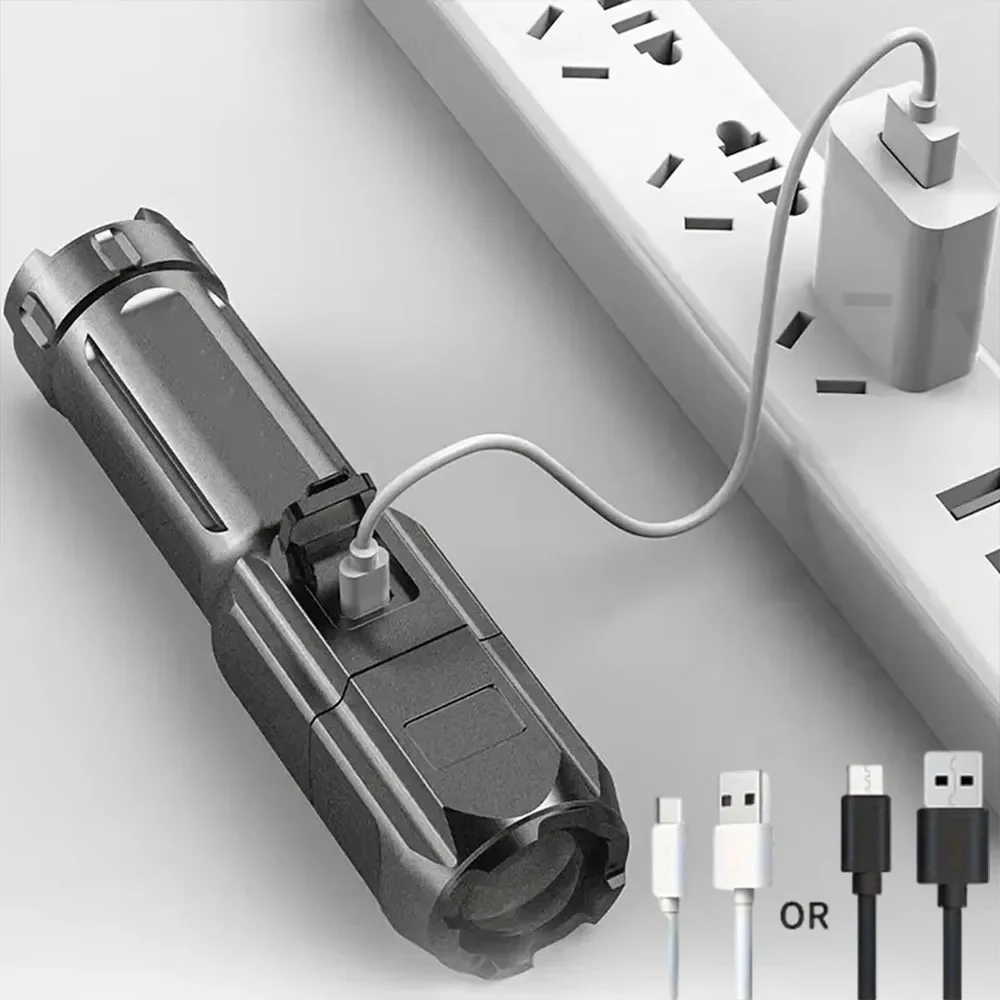 Super Bright LED Flashlight Rechargeable Zoom Torch 3 Modes Waterproof Long Range ABS Strong Light for Outdoor Camping Hiking